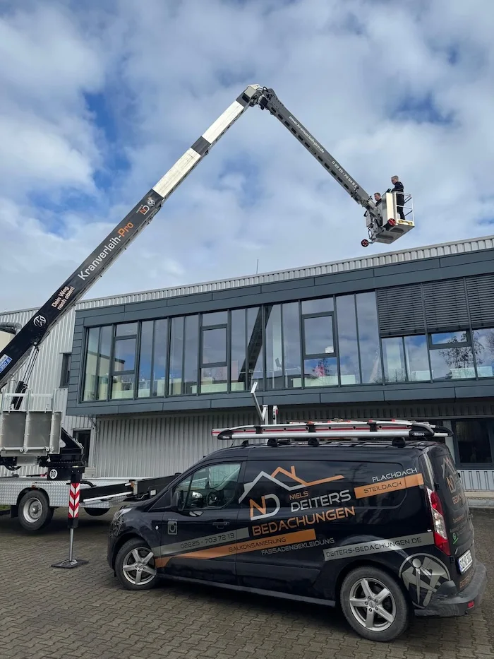 Hinter unserem Kranverleih steht ein erfahrener Dachdecker-Meisterbetrieb. Das ist Ihr entscheidender Vorteil: Wenn Ihr Projekt über den reinen Hub hinausgeht, haben wir die Experten für die Umsetzung direkt im Haus.